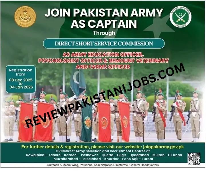 JOIN PAKISTAN ARMY AS CAPTAIN Through DIRECT SHORT SERVICE COMMISSION 2025-26