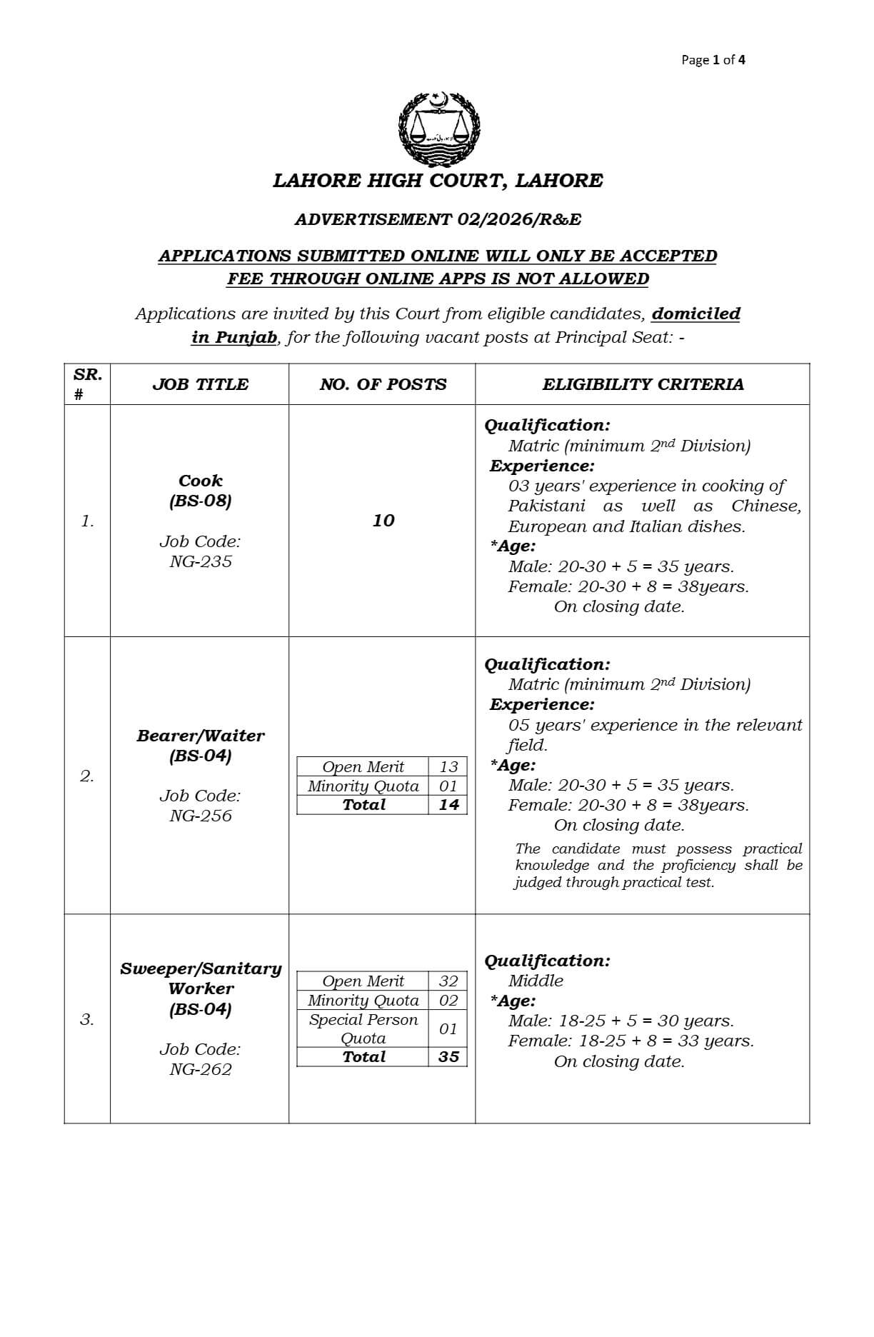 Lahore High Court Jobs 2026 – Punjab Domicile