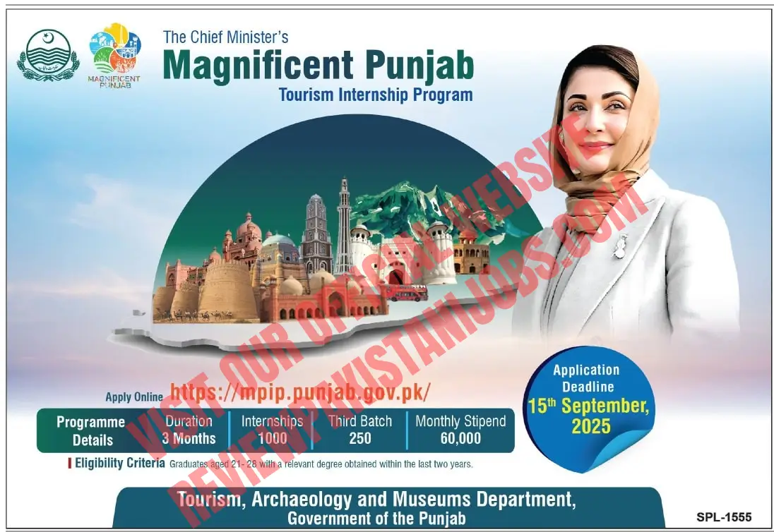 The Government of Punjab has announced the Magnificent Punjab Tourism Internship Program 2025, a golden opportunity for young graduates to gain practical experience, develop professional skills, and contribute to the tourism sector of Punjab. This fully funded internship program is initiated by the Chief Minister of Punjab under the Tourism, Archaeology, and Museums Department. With a monthly stipend of Rs. 60,000, the program is one of the most attractive internship opportunities in Pakistan for fresh graduates.