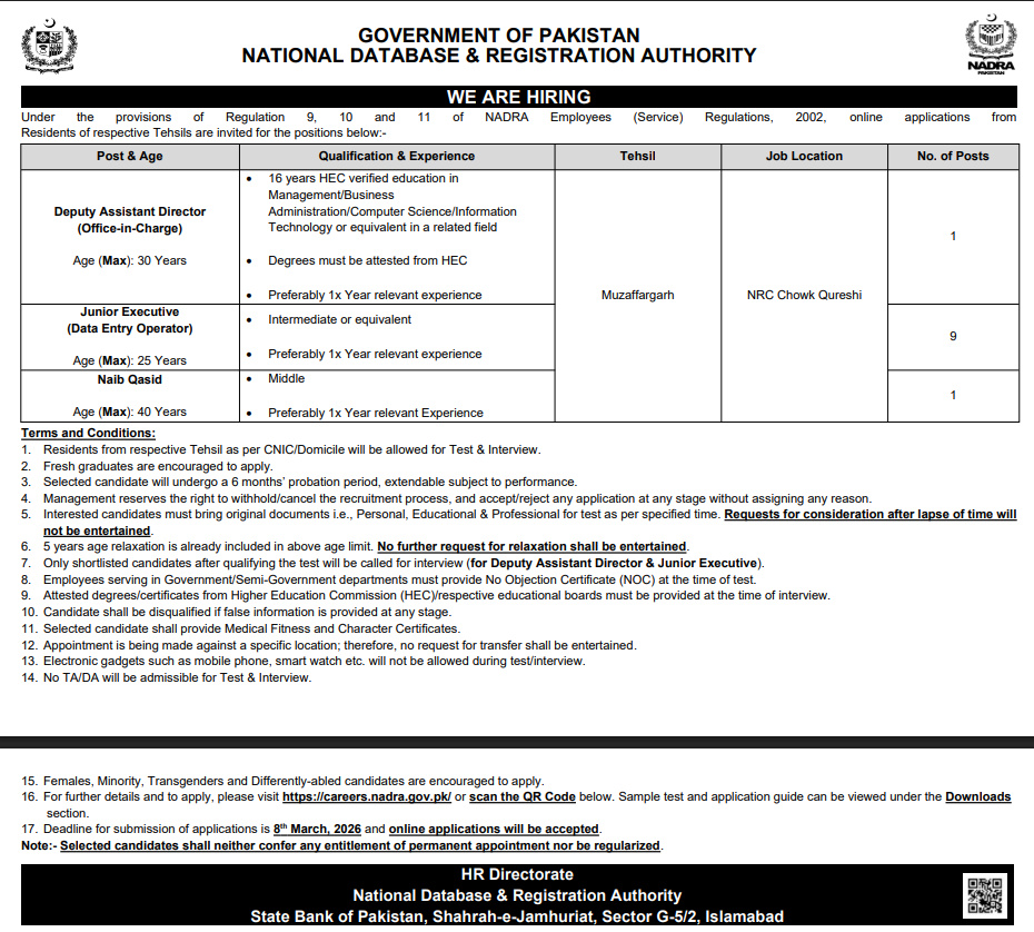 NADRA Jobs 2026 – National Database and Registration Authority Jobs