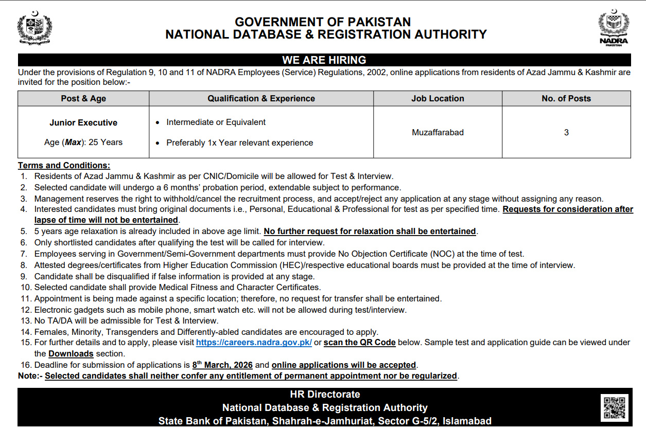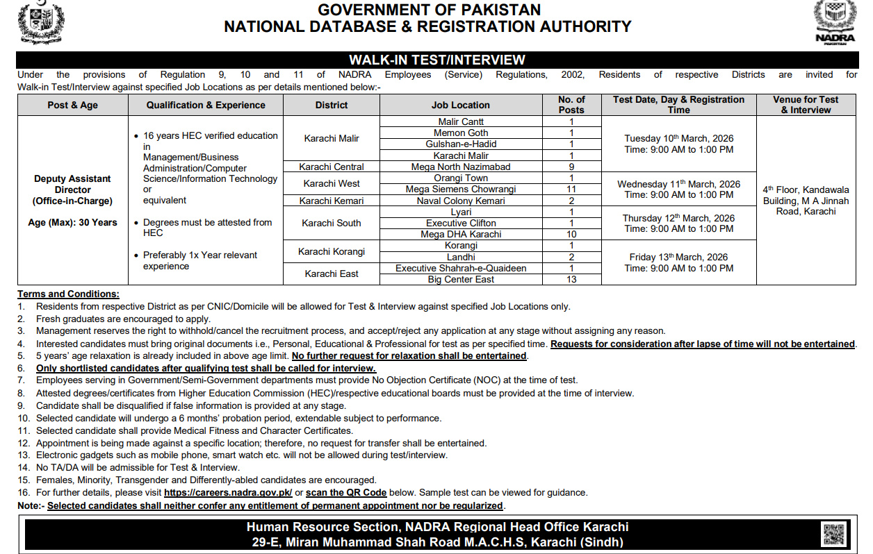 NADRA Jobs 2026 – National Database and Registration Authority Jobs