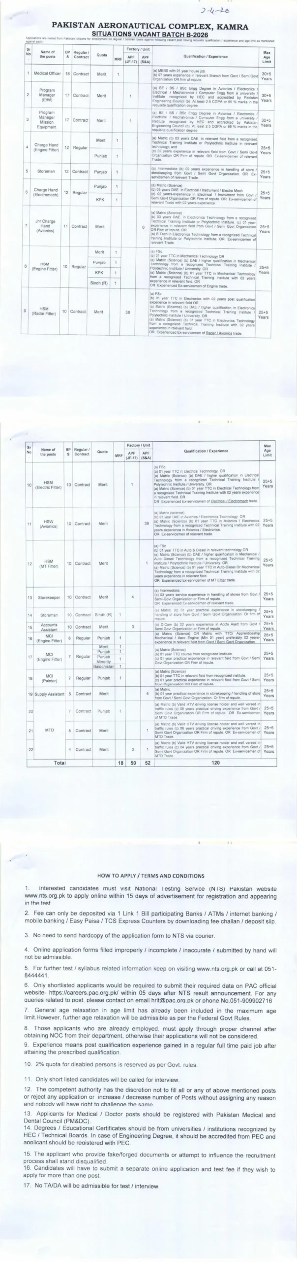 Pakistan Aeronautical Complex (PAC) Kamra Jobs 2026 – Batch B