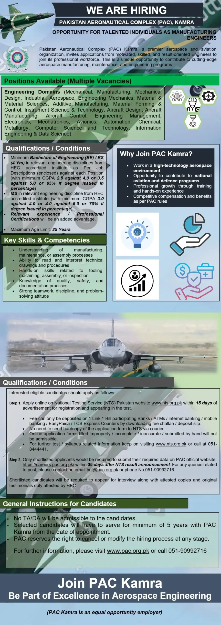 Pakistan Aeronautical Complex PAC Kamra Jobs 2026 for Manufacturing Engineers