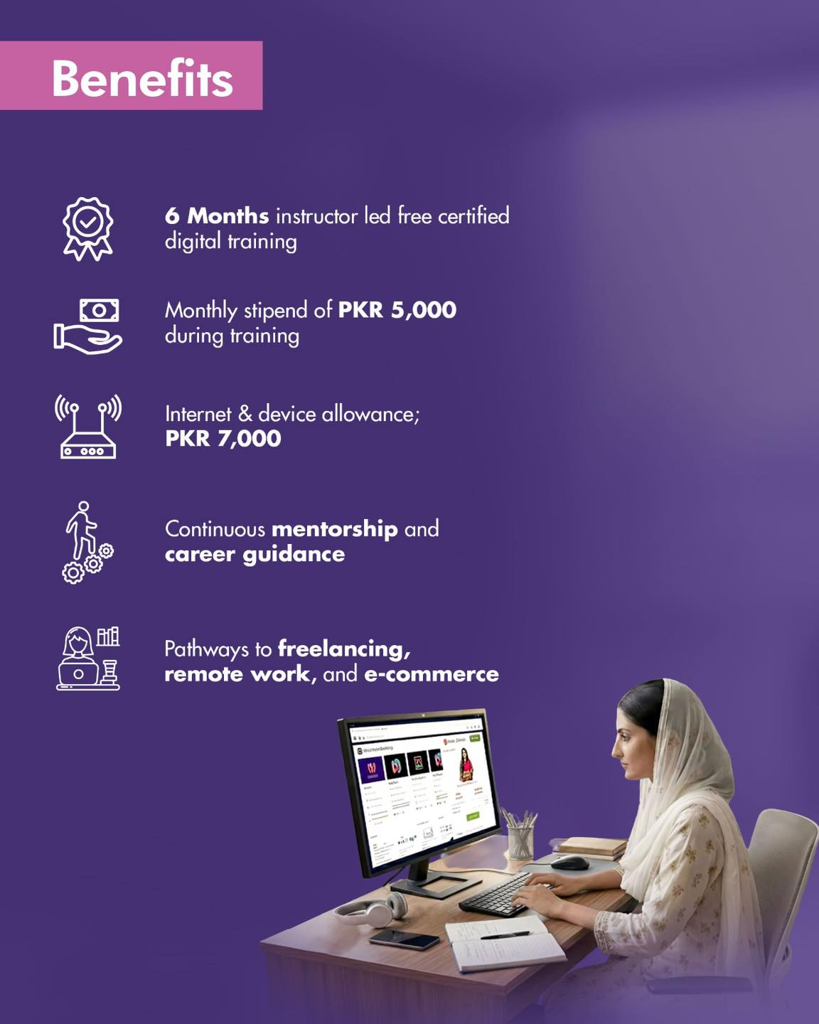 Selected trainees receive free desktop and internet connection.