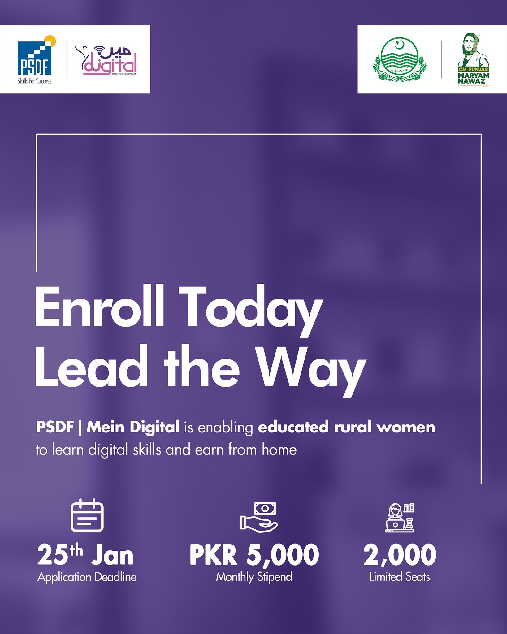 PSDF Mein Digital is a government-supported initiative under the vision of Chief Minister Punjab to promote women empowerment, digital inclusion, and financial independence. The program offers professional online training along with complete learning support, including desktop computers and internet facility.