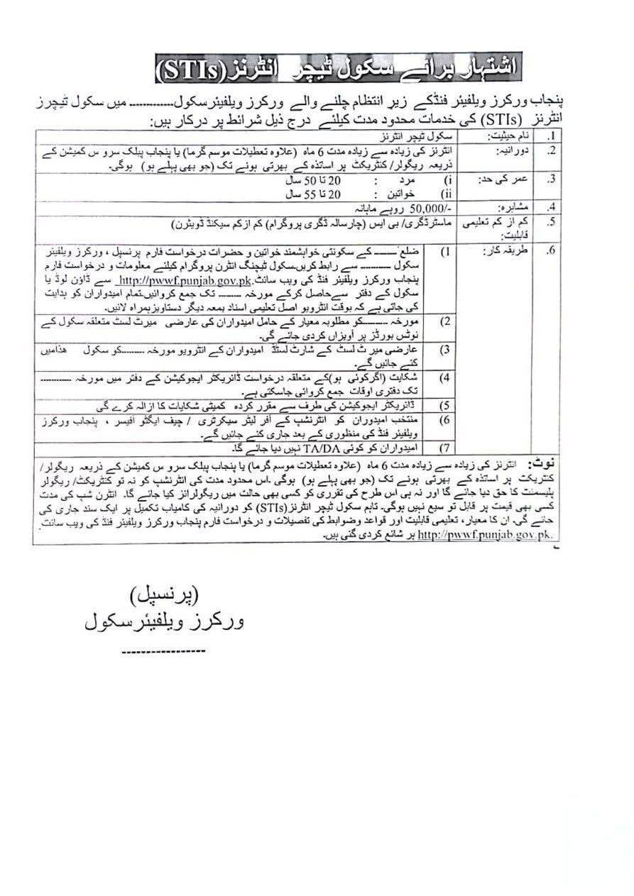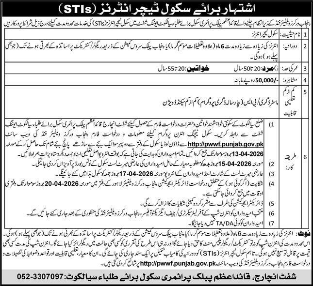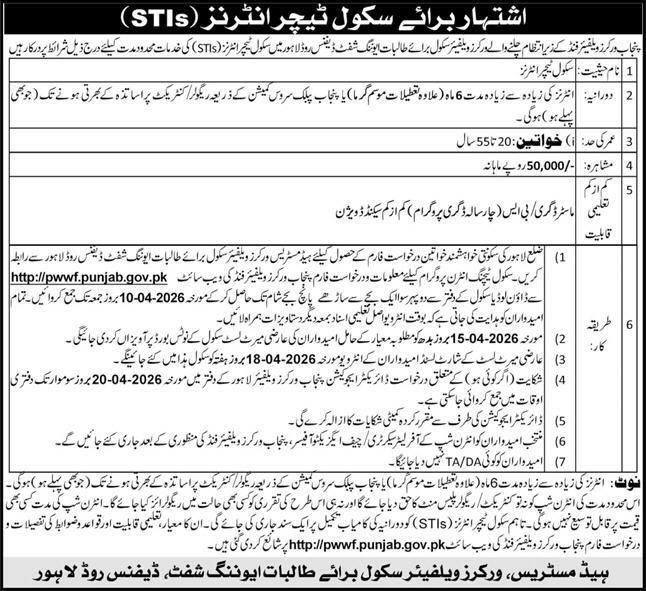 The STIs Jobs 2026 under Punjab Workers Welfare Fund are a great chance for candidates who want to gain teaching experience and earn a good monthly stipend.